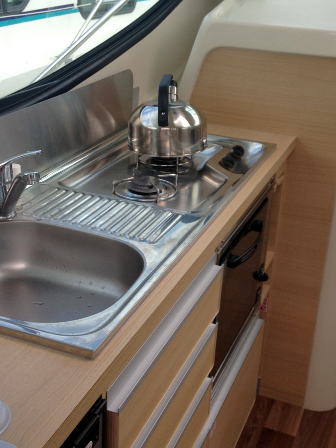 Sur le bateau, vous êtes autonome avec l'eau, la cuisine au gaz, les toilettes et la douche. Beaucoup mieux pour moi que la tente que l'on pose en pleine nature. Le bateau de chez Nicols, fabricant français était particulièrement bien conçu et j'ai même pu cuisiner.