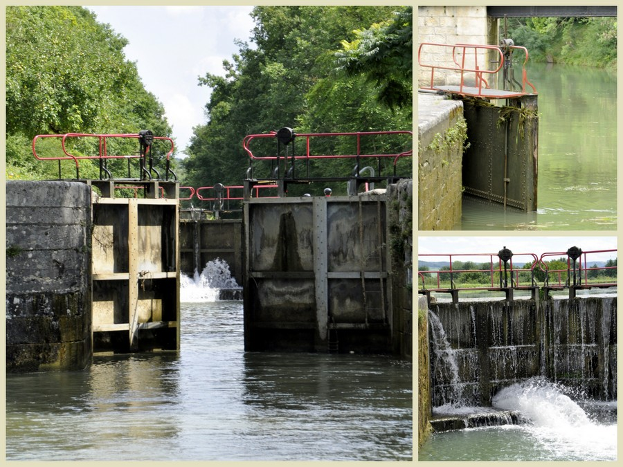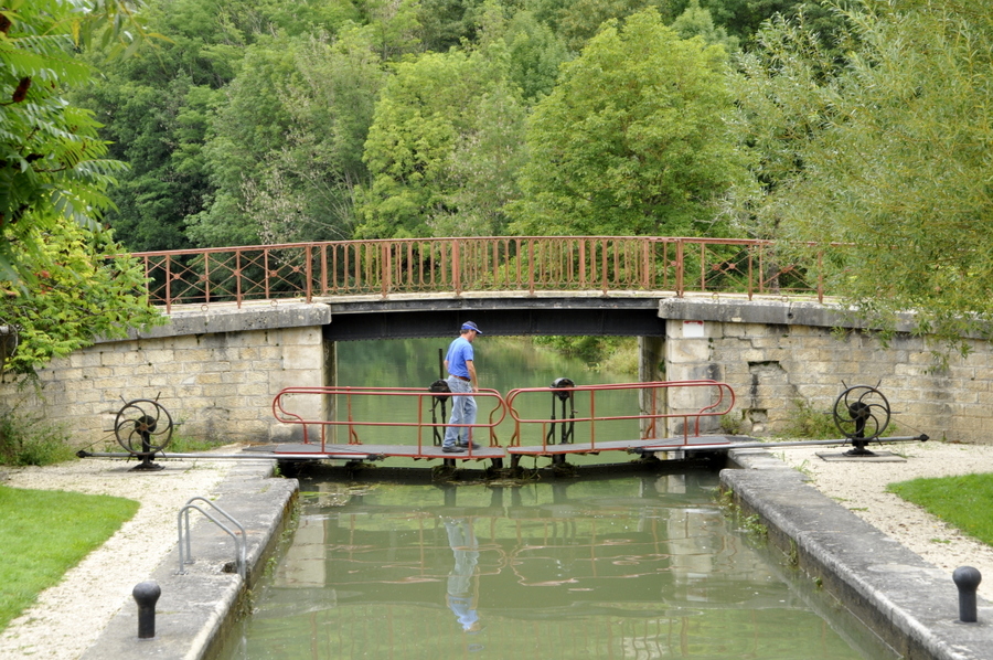 Il est ponctué d'écluses empruntées à la fois par les péniches et les bateaux de plaisance. Les écluses sont gérées par les Voies Navigables de France, sous la responsabilité des éclusiers. C'est un métier dont je ne soupçonnais pas l'existence. J'ai été agréablement surprise de voir qu'il y a autant d'hommes que de femmes et de tout âge.