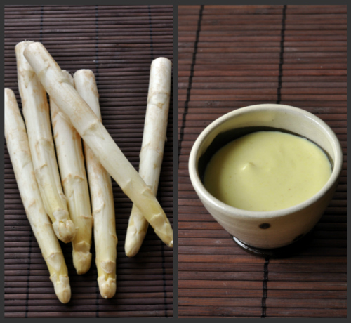 Quand j’habitais chez mes parents, à cette époque de l’année, ma mère nous servait en entrée des asperges blanches avec une mayonnaise maison qu’elle allégeait de blancs d’œufs battus en neige. Je me souviens de ce grand plat ovale en inox et de ces asperges fumantes que l’on trempait dans la mayonnaise posée sur le coté de notre assiette. Je les adorais.