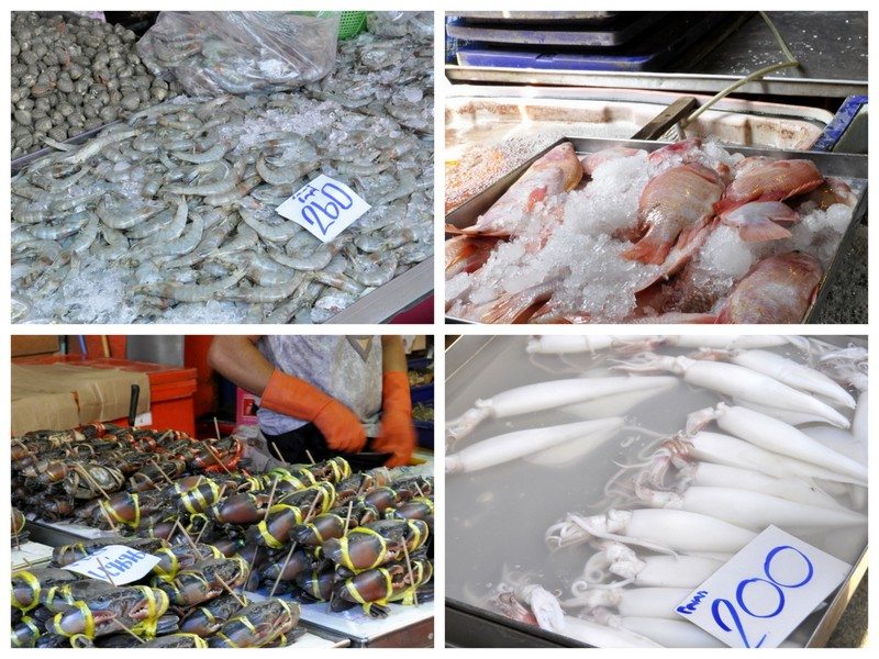 Les poissons vendus sur de la glace sont magnifiques, tout comme les crevettes et les crabes.