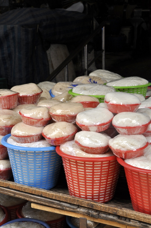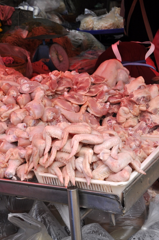 Coté viande, pour des touristes français que nous sommes, c'est plus compliqué. Passe encore les morceaux de poulet mais nous avons eu plus de mal avec la viande hachée et les abats, pas que nous ne les aimons pas mais à cause de la chaleur qui règne sur le marché et nos habitudes européennes de voir la viande dans des stands réfrigérés.
