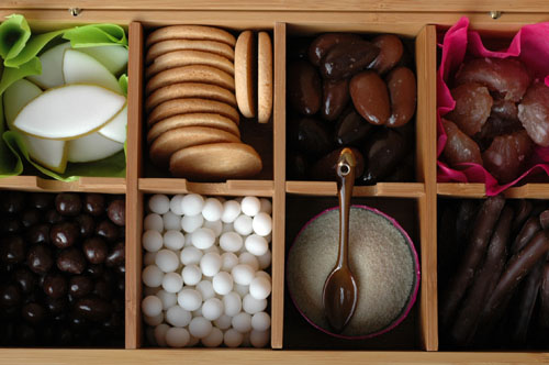 Excellente idee ! Moi qui adore les boites, j’ai pris exemple sur un couple d’amis et je sors toujours une jolie boite remplie de tablettes plus gourmandes les unes que les autres : lait, noir, pistaches, amandes, raisins…
