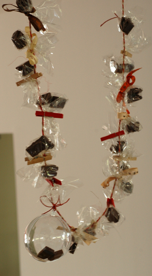 Il ne vous reste plus qu’à emballer un ou deux carrés de chocolat, prélevés sur une tablette de chocolat, dans les sachets confiseurs coupés en deux ou dans du film étirable, de les fermer avec une petite pince, un ruban ou du raphia puis de les accrocher sur la ficelle.