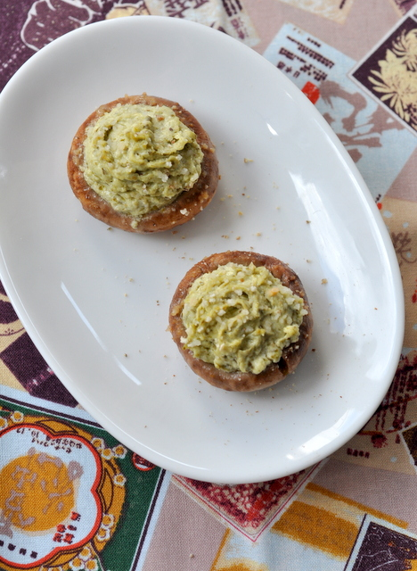 Pour mettre en valeur ce nouveau pesto à l’ail des ours, à la fois goûteux, tout en restant doux, j’ai choisi de faire des champignons farcis. C’est quelque chose que je fais rarement et c’est bien dommage car cela ne prend pas tant de temps que cela à préparer et c’est particulièrement agréable à manger, surtout en cette période où l’on commence à sentir les premiers prémices de l’automne.