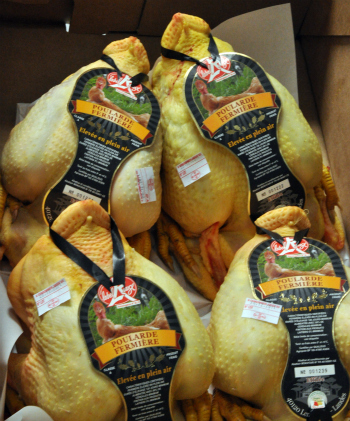 A Rungis, pas facile d’acheter quand on est un particulier, sachant que l’on ne va pas vous vendre une ou deux volailles. Comme nous étions plusieurs et que nous étions disciplinées, nous avons choisi la même volaille afin de pouvoir l’acheter en gros et c’est comme cela que nous sommes reparties avec un ou deux chapons de pintade chacune.