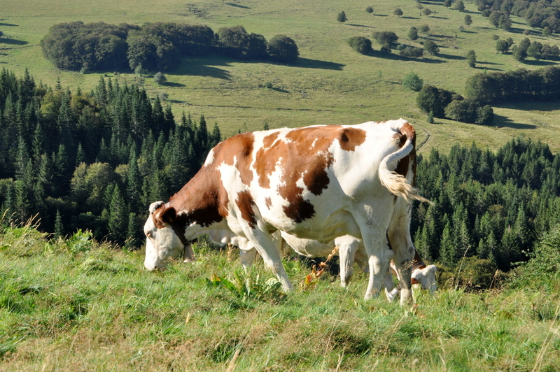 Nous avons eu la chance de rencontrer Gaby Charreire et son frère, éleveurs de vaches laitières (Aubrac, une vache rustique bien adaptée à la région du Cantal, Montbéliard, Holstein, etc.).