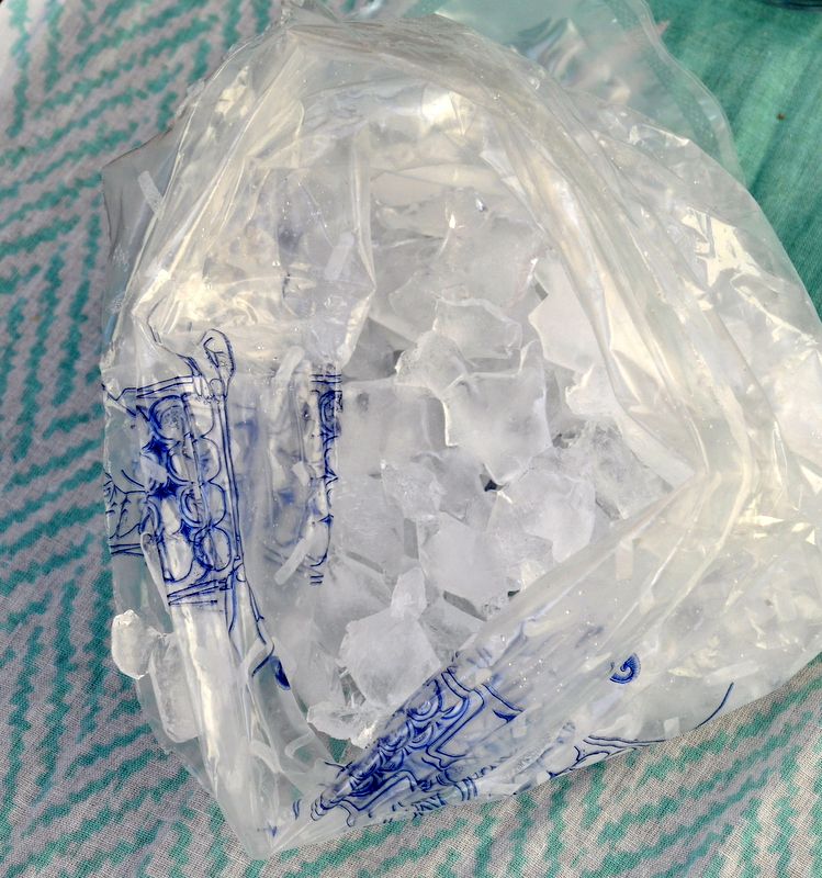 Pour les récupérer, vous découpez la base, vous séparez les deux feuilles de plastique et vous voilà avec une poche remplie de glacée pilée.
