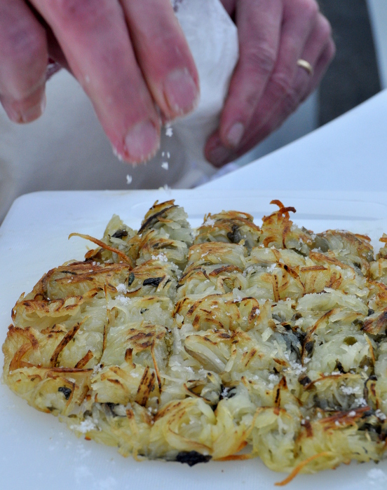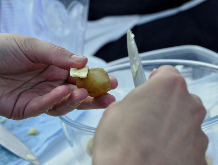 Avant d’aborder ce sujet complexe, retour sur une soirée durant laquelle nous avons cuisiné dehors, sous le soleil, à la coopérative agricole de Noirmoutier. Malgré le temps frisquet, nous avons découvert de très jolies recettes imaginées par Alexandra Beauvais pour le Centre Culinaire Contemporain de Rennes, comme des röstis de pommes de terre aux algues et des pommes de terre primeur de Noirmoutier en croûte de sel.