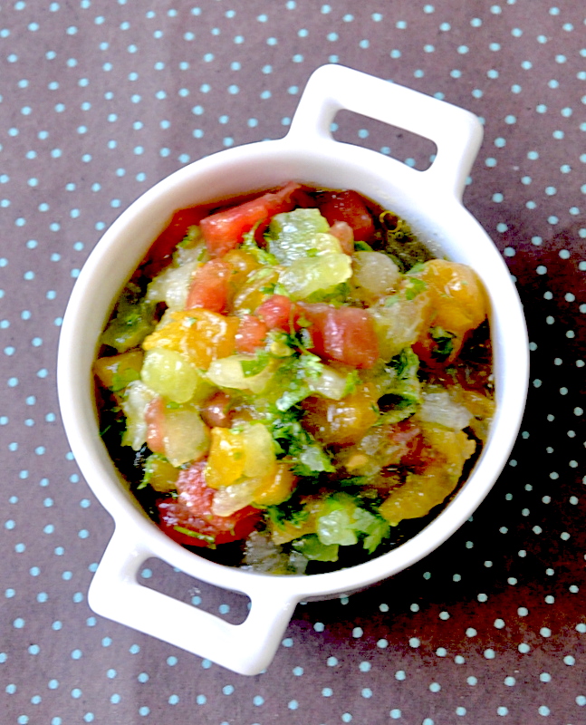 Autant j'ai appris à faire cuire du poisson, autant les sauces, c'est moins mon truc. J'ai découvert il y a très longtemps la sauce vierge, un mélange de tomates, d'herbes fraîches, de citron et de graines de coriandre, un grand classique de la cuisine française. Je crois que c'est dans un des livres de Michel Guérard que je suis tombée dessus, bien avant de créer mon blog de cuisine.