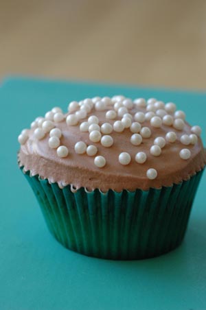 La ganache montée se pose sur les cupcakes à l’aide d’une poche à douille mais vous pouvez également en étaler une couche avec une petite spatule puis décorer avec perles ou vermicelles. Mettez ensuite vos cupcakes au frais.