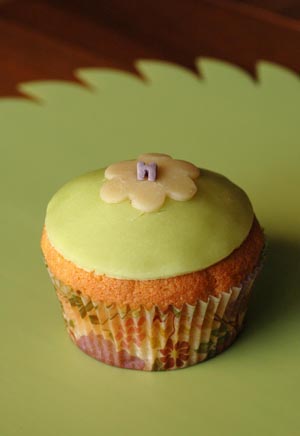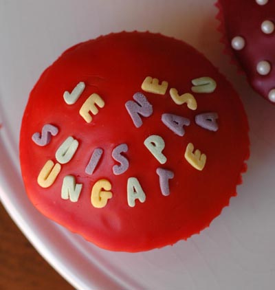 Le cupcake texte réalisé par Anne avec du fondant coloré.