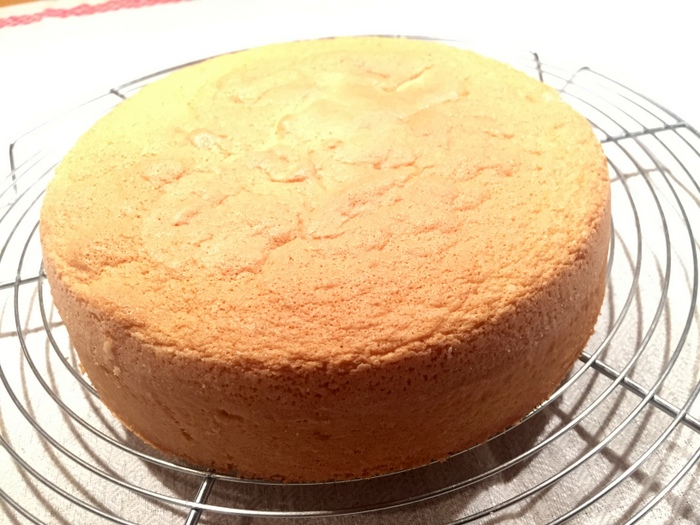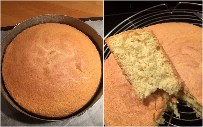 La génoise doit être dorée et les bords ont dû se rétracter légèrement du bord.
