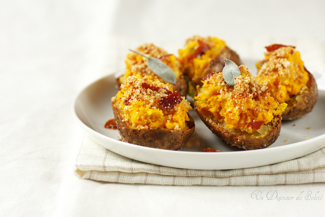 Edda du blog « Un déjeuner de soleil » avec ses pommes de terre farcies au potimarron et crumble minute de jambon (voir photo plus haut)