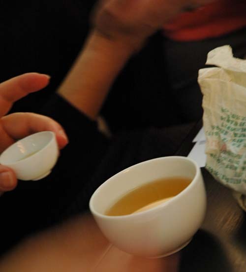 Nous avons dégusté 10 thés, des thés blancs aux thés verts, en passant par les thés jaunes pour arriver aux thés bleus verts, aux thés rouges (appelés thés noirs en occident) et aux thés noirs (Pu Er) ou sombres en occident).