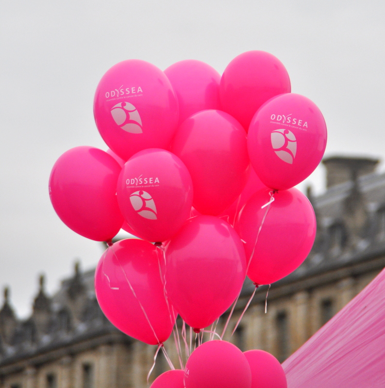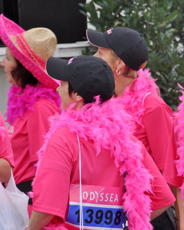 Au moment du départ pour la course des 5 kms, le moment est particulièrement émouvant, je ne peux pas m'empêcher d'être émue par tous les messages et en particulier par ceux qui évoquent le cancer du sein, qui ne doit plus être un sujet tabou.