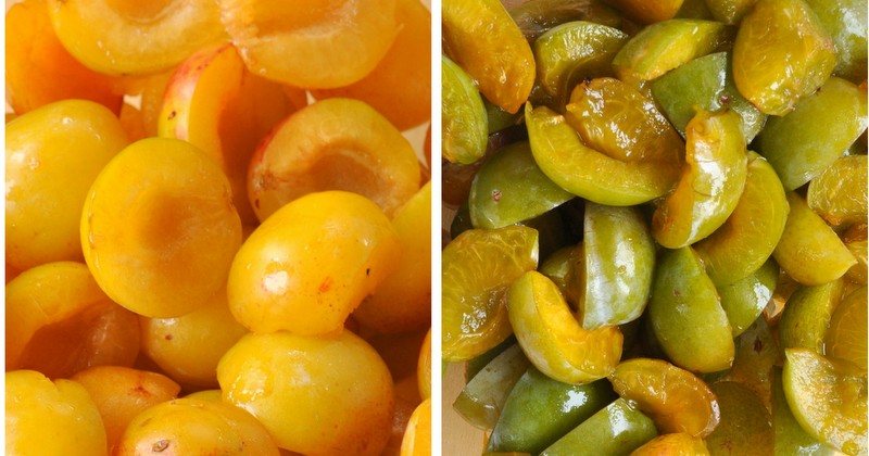 Coupez les oreillons de reine-claude en deux, laissez les oreillons de mirabelles intactes.