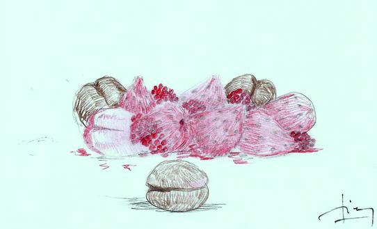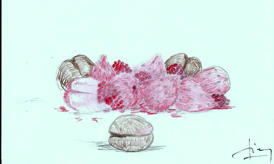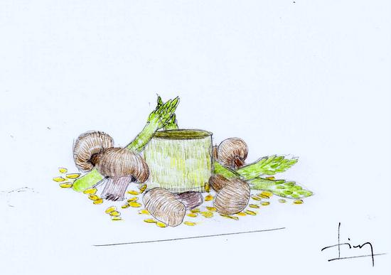 Paul, en plus de la cuisine manie le crayon avec talent et je suis très émue en découvrant qu’il a retranscrit mon menu en dessins.
