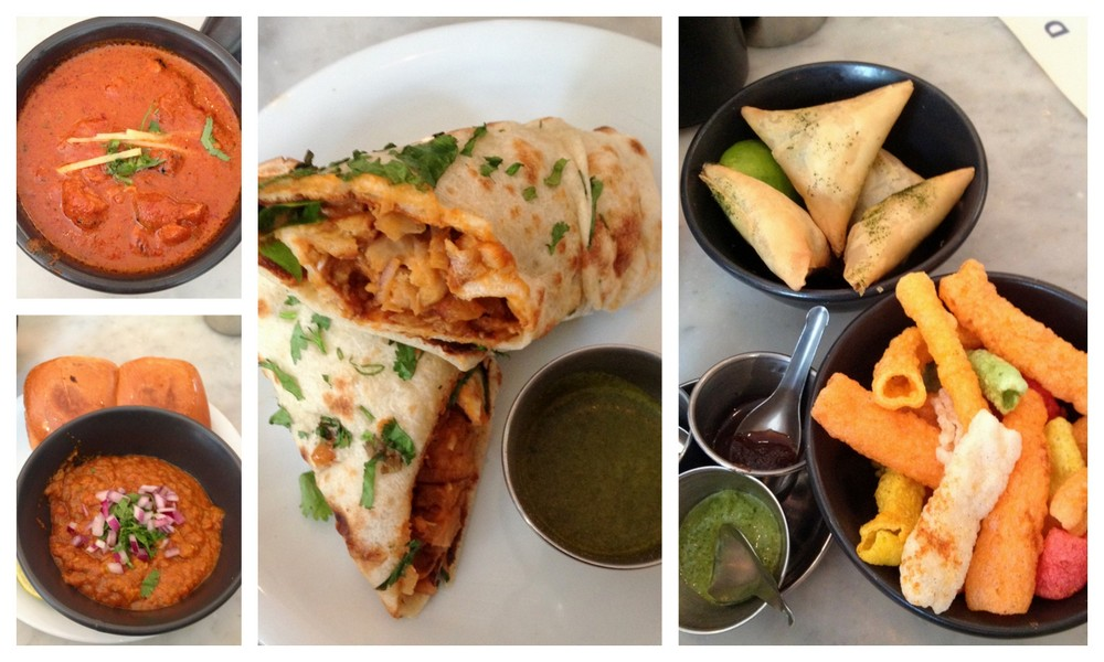 • Chole Frankie : un pain plat garni de pois chiches en sauce épicée, c'est servi avec un chutney de menthe maison (au milieu)