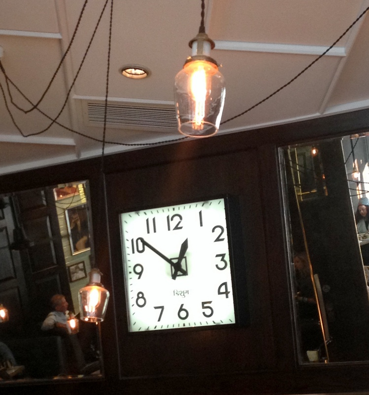 L'accueil est particulièrement chaleureux, les britanniques sont vraiment trop forts. L'endroit est spacieux, j'aime beaucoup la déco avec de jolis jeux de miroirs, un savant mélange de matières entre le bois des murs, le sol mi parquet, mi carrés B&W, le dessus en marbre des tables de bistrot et le cuivre en petites touches.