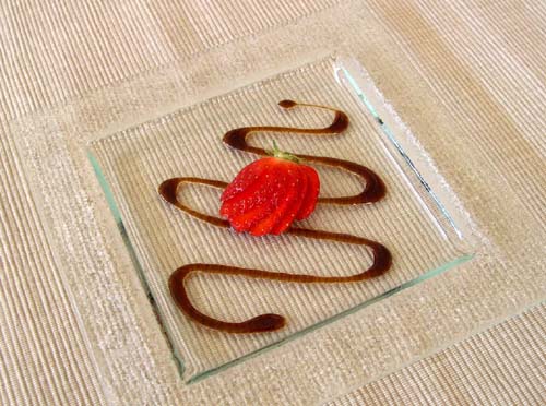 J’ai profité de l’arrivée des premières fraises françaises « les gariguettes » pour goûter ce mélange. J’avais déjà mangé des fraises avec du poivre et du vinaigre balsamique mais là, c’est encore mieux. Le caramel de balsamique, en plus d’être savoureux permet de faire de très jolis décors. Bouteille_decor_1