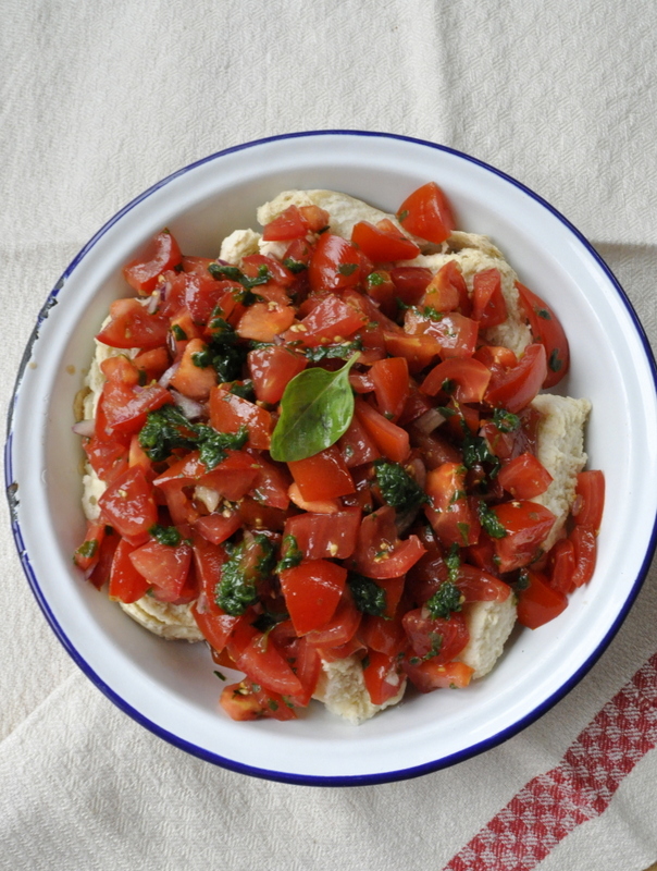 Le pain au goût assez neutre va s'imbiber doucement du jus des tomates et de l'assaisonnement, c'est divin.