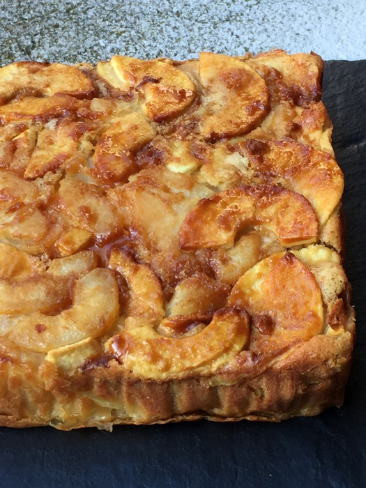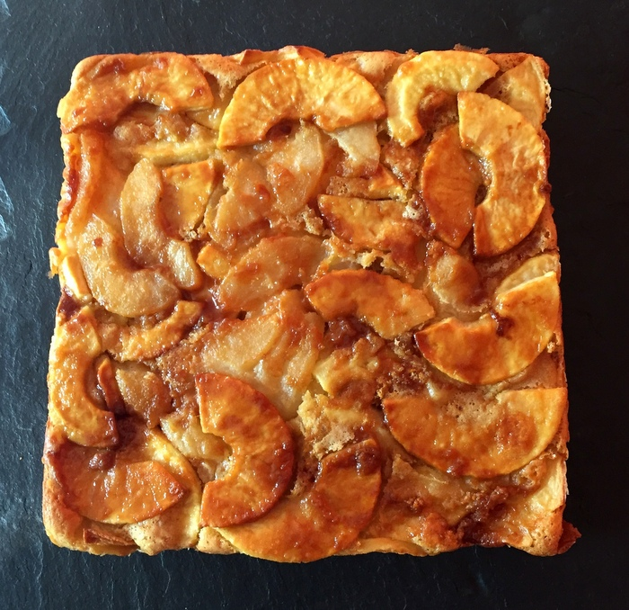 Je n'aime pas être nostalgique, je préfère faire des gâteaux à partager, comme cette version aux pommes avec une pointe de caramel, délicieusement rustique.