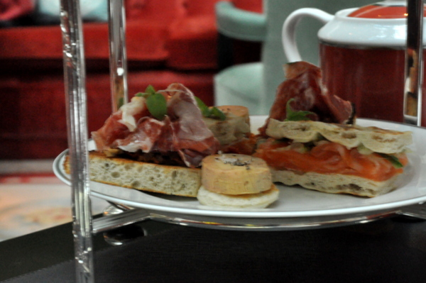 Les finger sandwichs (foie gras, saumon fumé sur pain polaire et jambon espagnol Mangalica sur pain aux herbes) sont bien pensés et plus originaux que ceux que nous avons pu goûter ailleurs. Un coup de cœur notamment pour celui au jambon Mangalica, un délice.