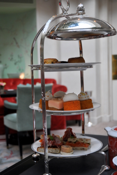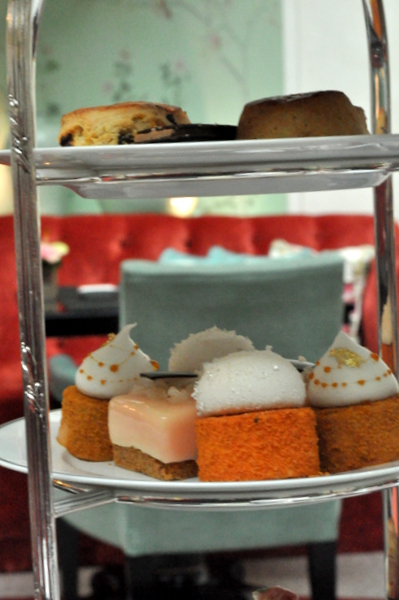 Les pâtisseries sont adorables, comme des petits bijoux. Elles existent en version individuelles présentées sur un chariot à l’entrée du salon de thé mais aussi en version mini, comme sur la photo. C’est François Perret le chef pâtissier de l’établissement qui les prépare. Je vous invite à lire son interview sur le blog d’Elodie, sur ce lien et à savourer ses très jolies photos.