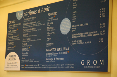 * Grom est le nom de l’un des fondateurs, Federico Grom. L’entreprise existe depuis 2003. Ils ont 17 boutiques en Italie, 1 à New-York et 1 à Paris depuis aujourd’hui.