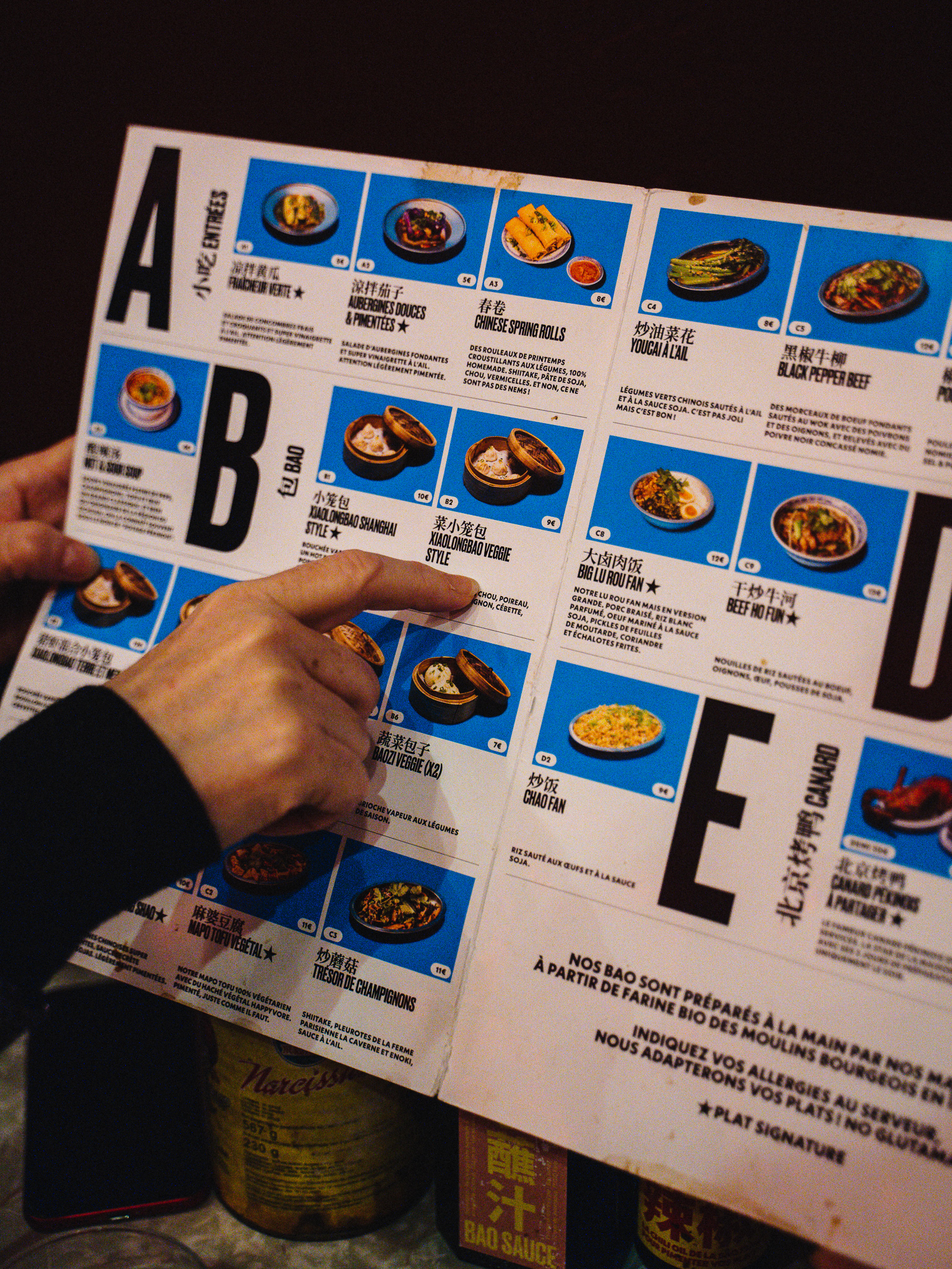 A quelques minutes de la place de la République, aux bords du Canal Saint-Martin, chaque visite chez Gros Bao est un plaisir renouvelé. Merci mille fois à Yoann Gloaguen qui a fait les sublimes photos du repas et de l’ambiance.
