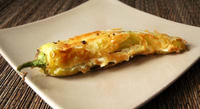 Jalapeno_poppers_avant_cuisson_vue_2Farcissez chaque piment avec ce mélange, en veillant à ne pas trop les remplir, car vous devez pouvoir les refermer.