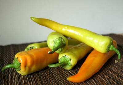 Mettant le billet de coté, j’ai contacté Laurange (Marie-Ange), la spécialiste de la cuisine d’Amérique du Sud. Laurange est l’auteur du blog « Saveurs Mexicaines » et elle vient de publier un livre que j’adore « Recettes Latinos » (editions First). Nous avons échangé quelques mails, et, tel un médecin, elle a diagnostiqué que mes piments sont des piments bananes souvent utilisés dans la cuisine asiatique.  Ce sont des piments que l’on peut manger tels quels même s’ils sont relativement épicés. S’ils l’étaient plus, il faudrait les utiliser uniquement en guise de condiment, comme les piments oiseaux.