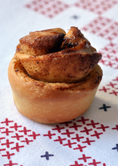 Après avoir découvert les kanelbullar chez Ikea, j’ai essayé de les refaire une fois ou deux à la maison mais j’ai toujours trouvé qu’ils sèchent trop vite alors que la même pâte cuite en un seul morceau reste moelleuse.
