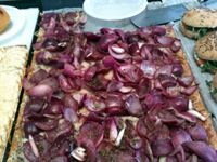 Pour le déjeuner, j’ai opté pour le bun au paprika garni de bacon et de laitue, un délice. J’ai également pu croquer dans sa tarte aux oignons revisitée : une pâte sablée au parmesan très goûteuse, recouverte de comté fondu et de lamelles d’oignons rouges façon cornichons au vinaigre. La prochaine fois, j’en prends une entière.
