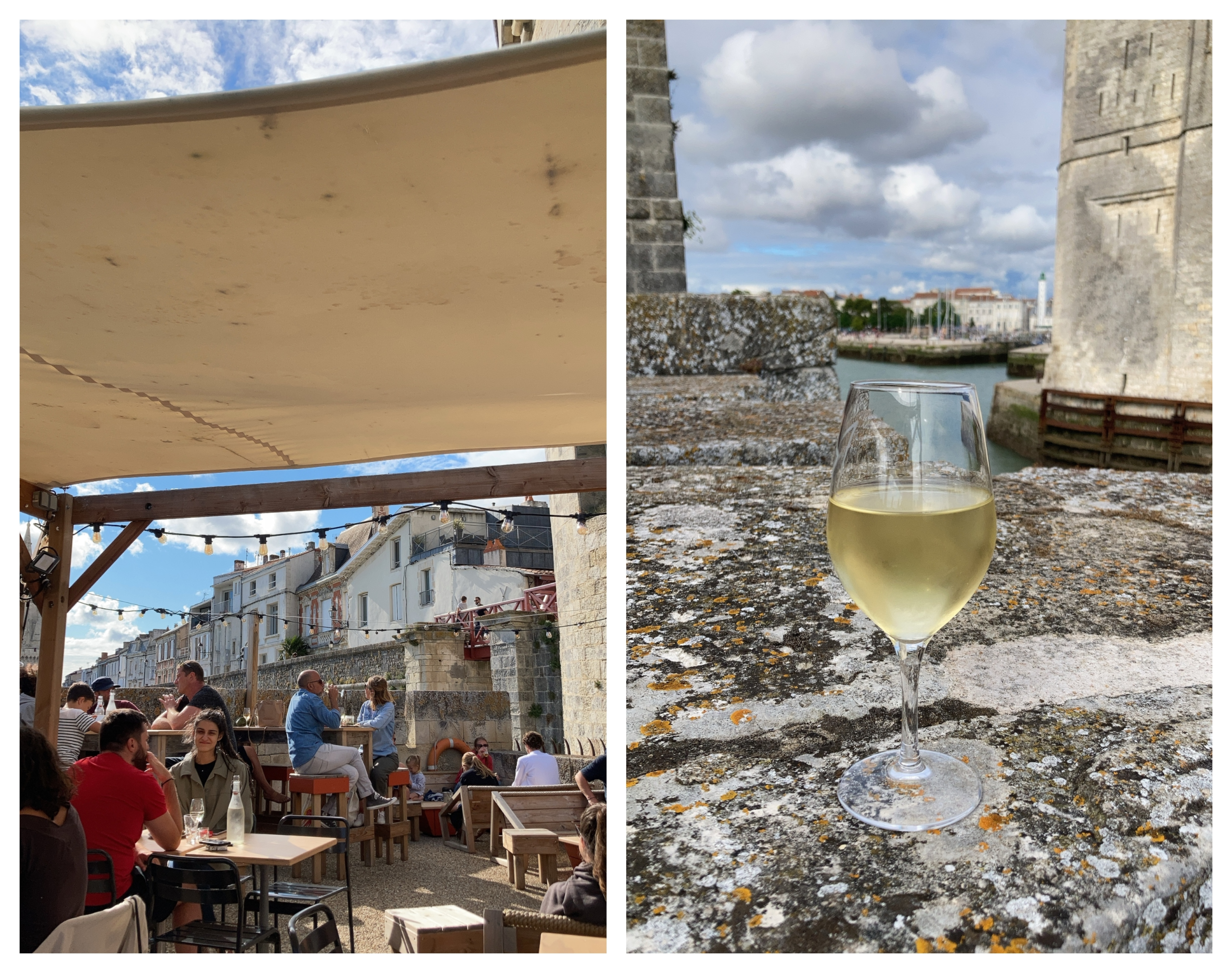 Sur le vieux port, une adresse que j’aime beaucoup pour sa vue (c’est en haut d’une des tours de la Rochelle) mais aussi pour les boissons qui sont de très bonne qualité avec notamment des vins naturels. Possibilité de grignoter grâce à des planches, des sandwichs ou des tapas mais nous n’avons pas testé. L’ambiance y est bon enfant, à l’image de La Rochelle. Nous n’avons pas eu de problème à trouver de la place car nous y sommes arrivés pour un apéro précoce, vers 18h30. Je pense qu’en saison, c’est une bonne idée d’arriver tôt pour être certain d’avoir une place car ce n’est pas immense.