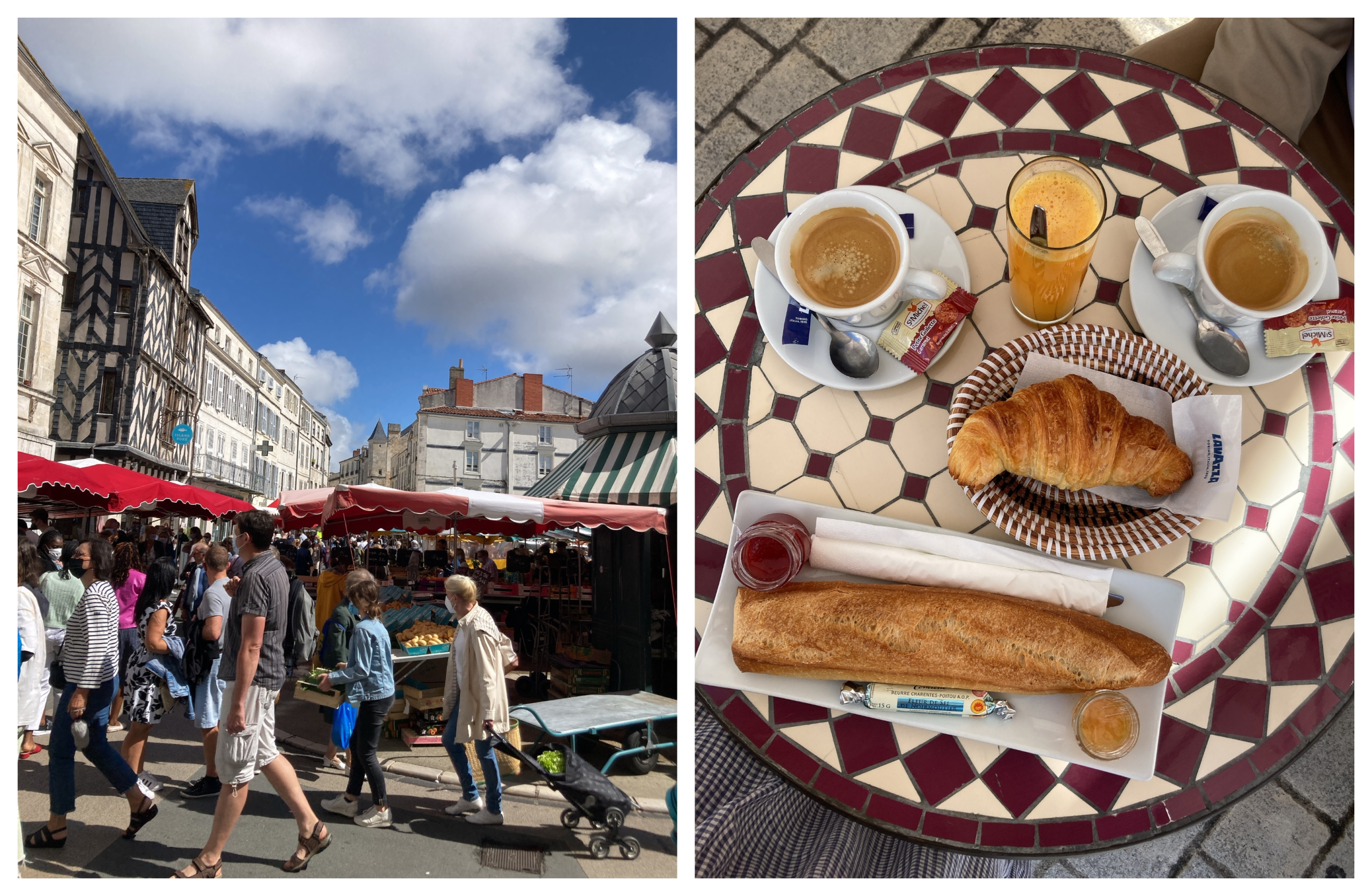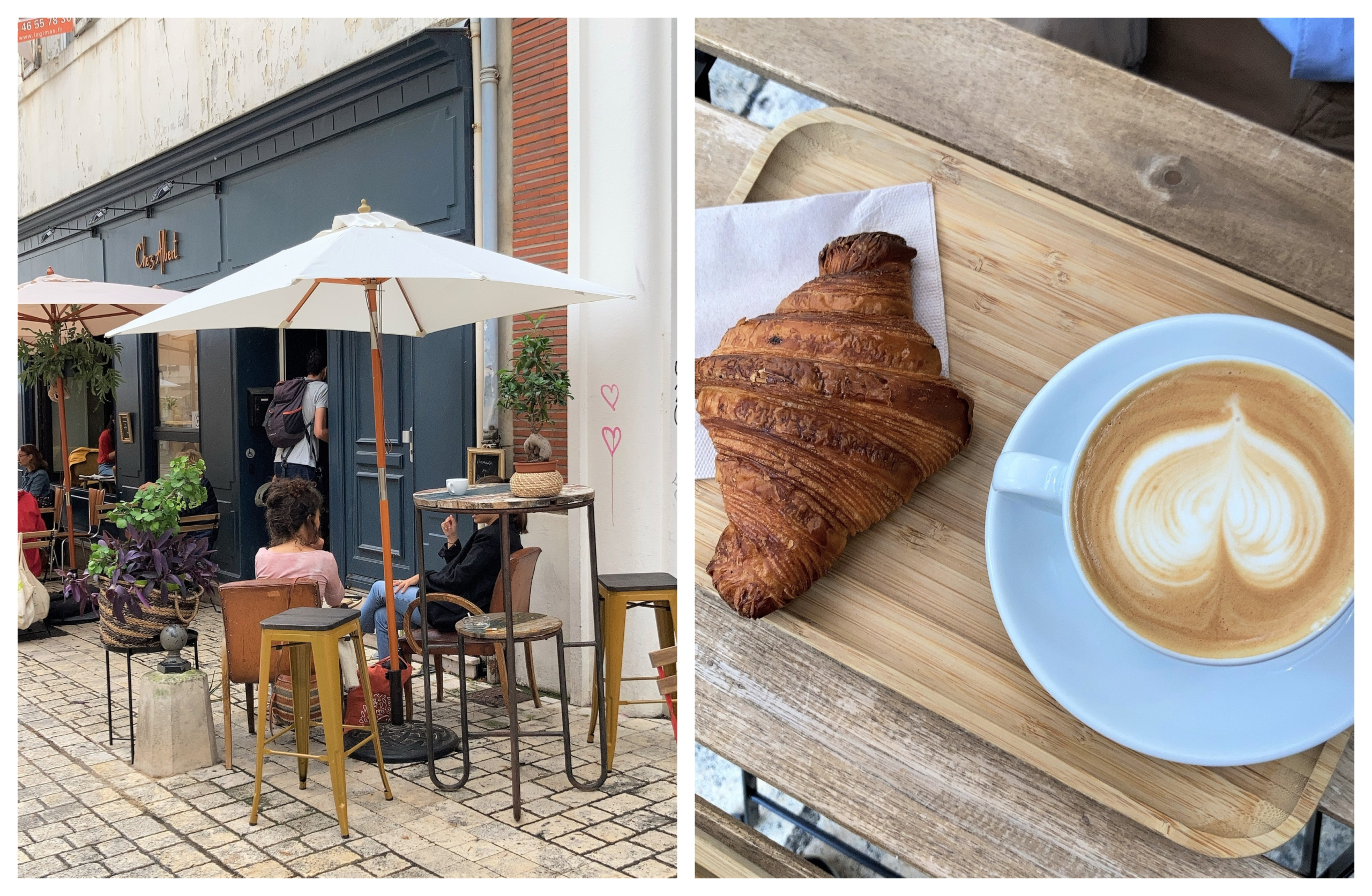 Nous aimons beaucoup ce café super animé avec sa rangée de tables qui bordent le marché couvert de la Rochelle. C’est l’antithèse d’un coffee shop. J’aime le fait qu’ils servent le petit-déjeuner traditionnel des cafés français mais avec une confiture maison et du beurre la Corvette, le top des beurres AOP Charentes-Poitou. L’ambiance est bon enfant. Bon à savoir : à partir de 11 h, vous pouvez acheter huitres et fruits de mer sur le marché juste derrière et vous attabler. Le restaurant s’occupe de tout le reste.