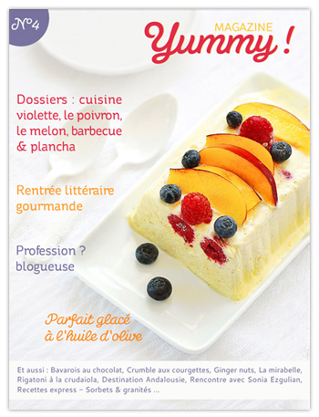 Lorsque j’ai découvert le premier numéro de Yummy, en février, je suis tombée sous le charme de ce magazine de cuisine en ligne et j’en avais parlé dans ce billet. Il s’agit d’un magazine collaboratif, résultat d’un formidable travail d’équipe de blogueuses et de blogueurs culinaires.