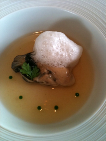 Huitre en fine gelée d’eau + caviar + écume de jus de coque, comme chez Richard et Christopher Coutanceau à La Rochelle