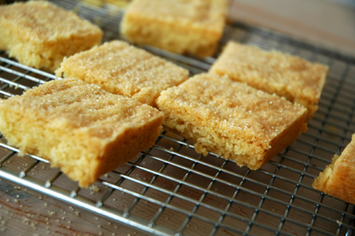 Sa recette est assez surprenante car la pâte à shortbread est cuite directement dans un moule carré (comme ceux des brownies), alors que je suis plus habituée à les faire cuire après les avoir découpés en forme ronde ou en bâtonnets. Du coup, sa recette est extrêmement rapide à réaliser.