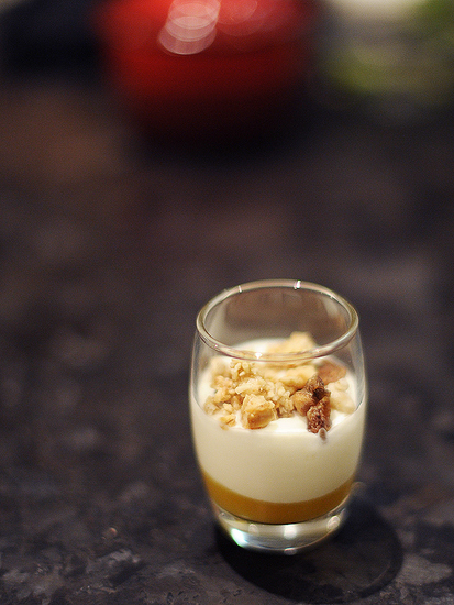 Mousse de fromage blanc façon Fontainebleau et sa compote pomme-abricot