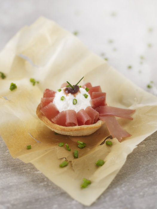 Mini-tartelettes chèvre, figue et jambon fumé