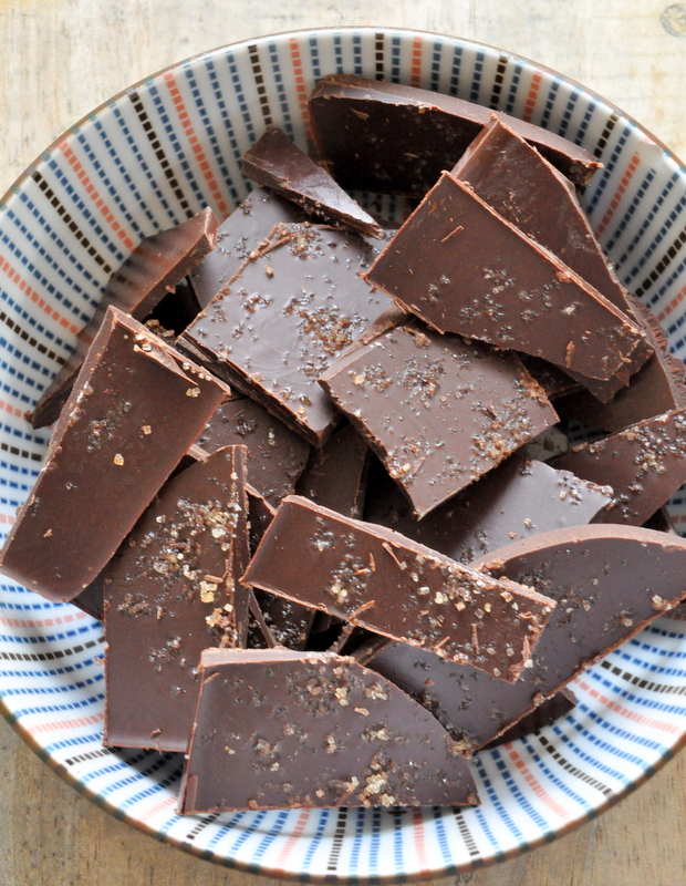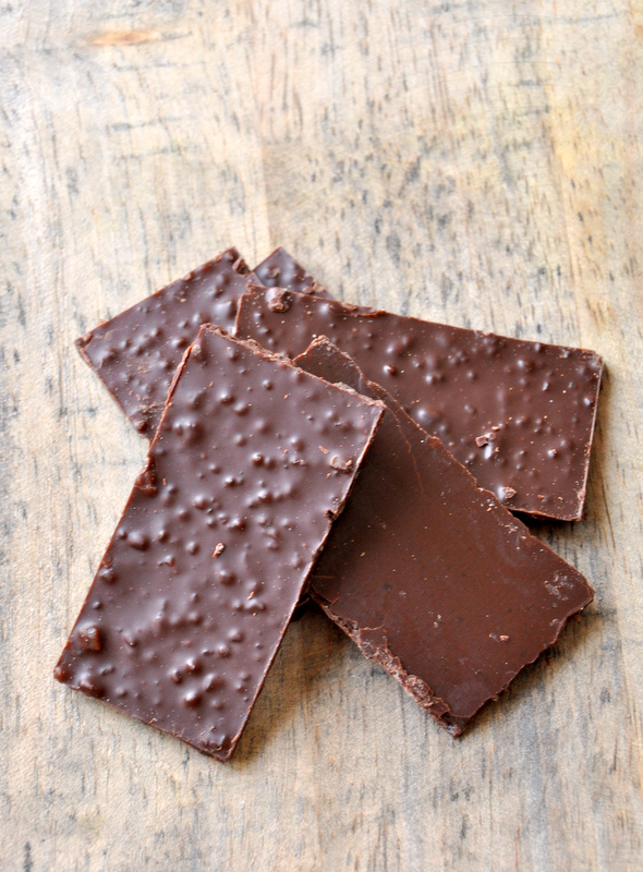 Au bout de quelques heures, démoulez la plaque de chocolat puis coupez-la en morceaux.