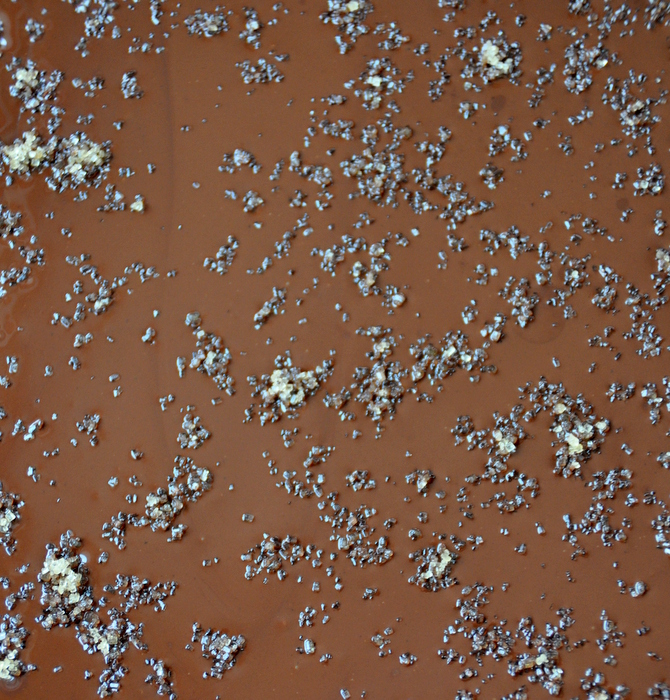 J’ai commencé par me demander comment obtenir ce côté croustillant et mentholé. Après quelques recherches sur Google, j’ai compris qu’il faut mélanger du sucre de type cassonade avec de l’extrait de menthe puis le saupoudrer sur du chocolat fondu.