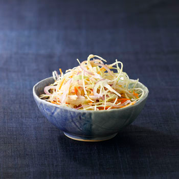 Pour le coleslaw, j’aime beaucoup utiliser un mélange de chou blanc et de chou rouge. Ca donne une jolie couleur à la salade.