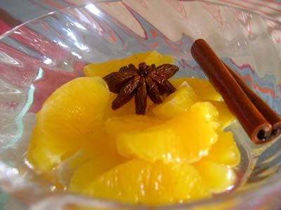 Oranges au Jurançon et aux épices.
