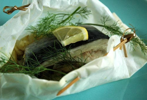 Papillotes de maquereau sur fondue de fenouil au Ras El Hanout
