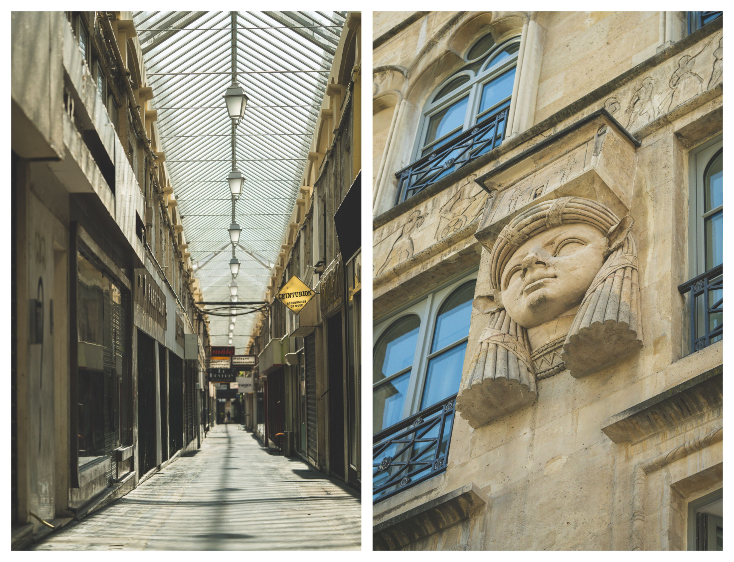 Traversez la rue Réaumur, continuez encore tout droit et prenez le passage du Caire, l’un des plus typiques du quartier, nettement moins connu que les autres passages parisiens proches de la Bourse et des Grands Boulevards. Ici, vous êtes vraiment au cœur du quartier du Sentier. Pas étonnant que le nouvel hôtel qui a ouvert récemment au bout du passage s’appelle l'Hôtel du Sentier. Vous êtes sur la place du Caire, une petite place toute mignonne et j’ai très envie d’y revenir boire un verre. Levez la tête et admirez l'immeuble de l'hôtel, magnifiquement restauré.