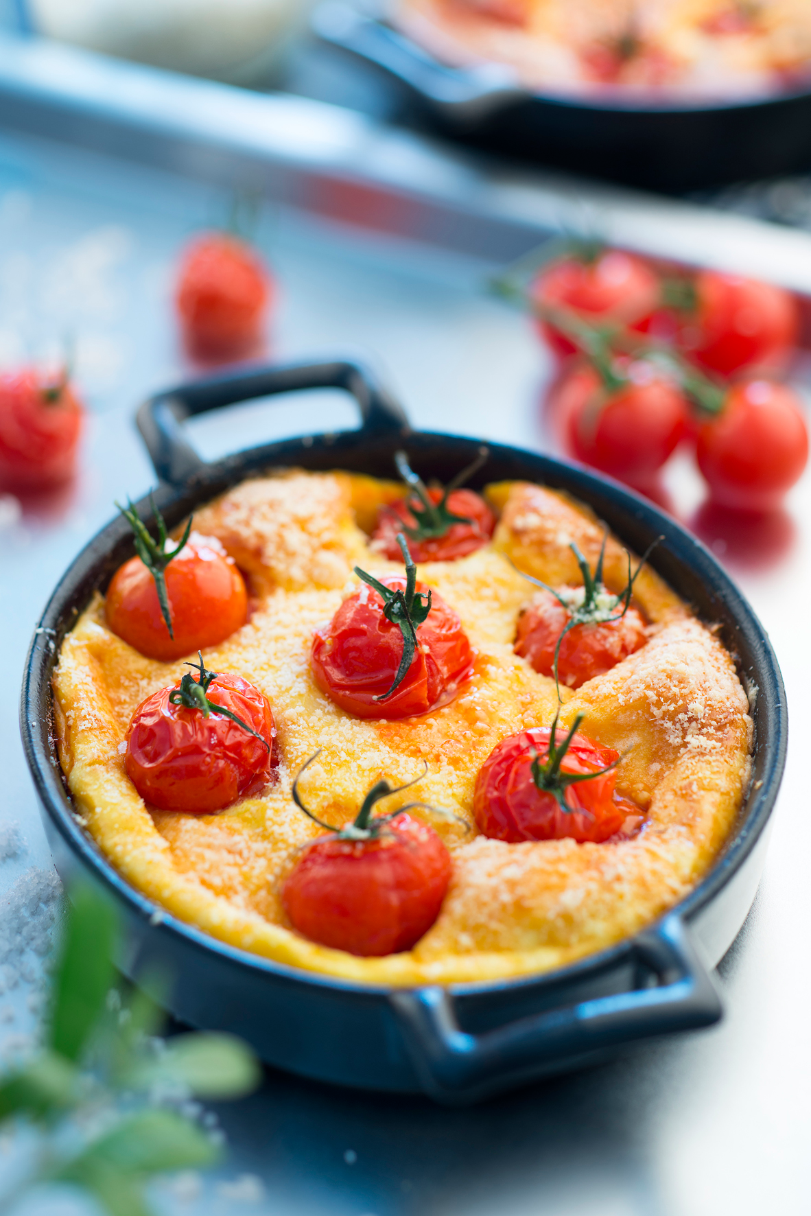 Petits clafoutis légers aux tomates cerise rôties & parmesan