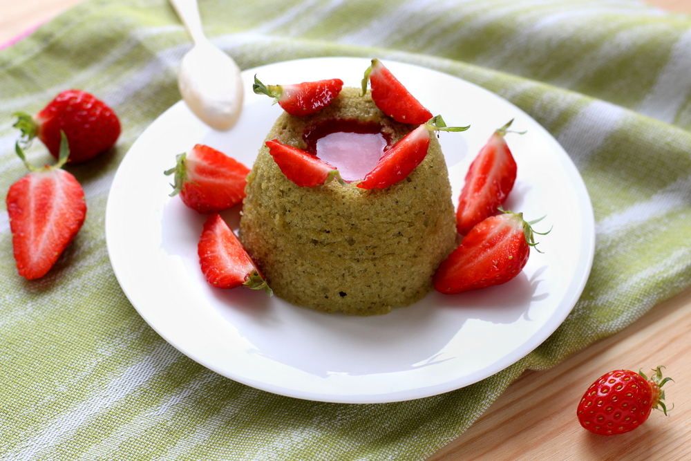Petits moelleux à la vapeur au matcha et à la fraise