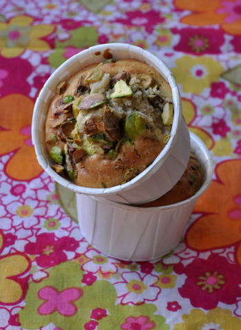 Parsemez la surface de chaque moelleux avec les pistaches concassées.